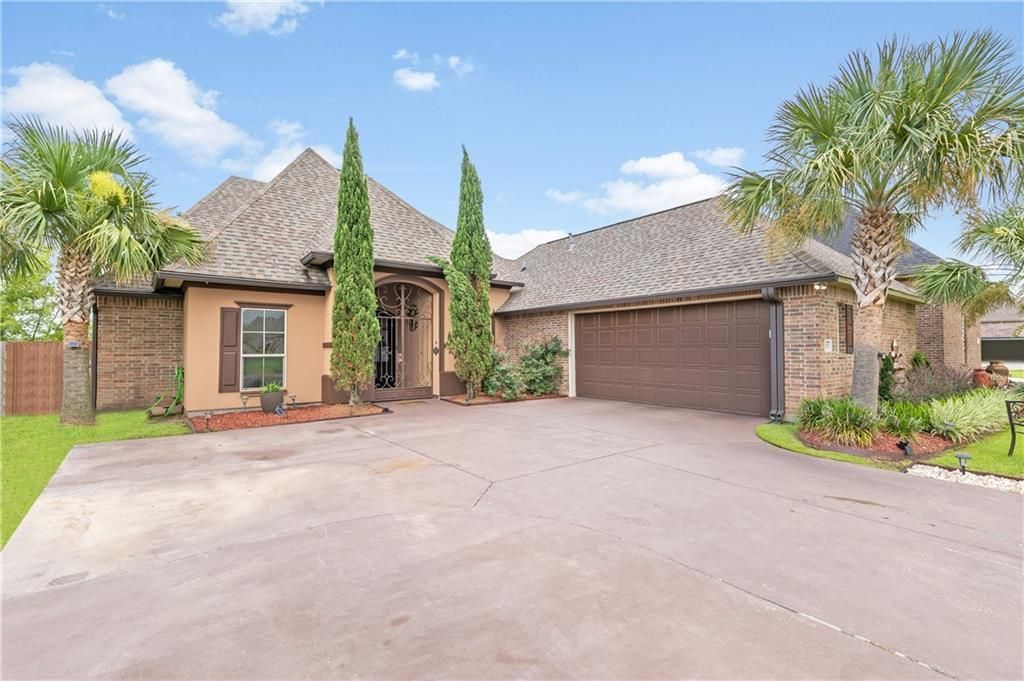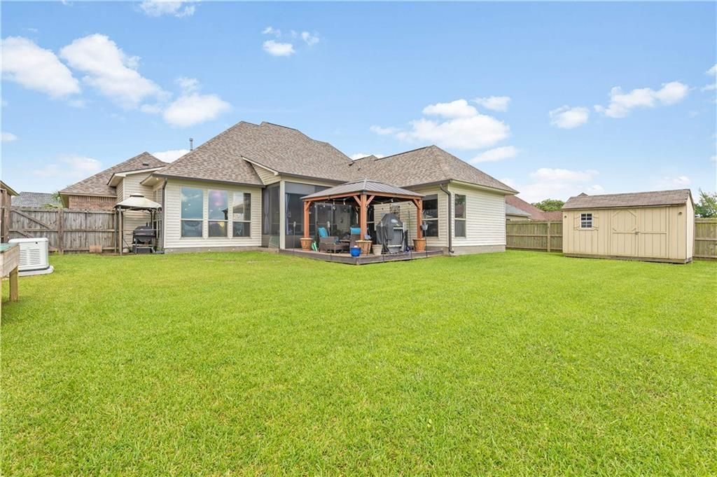 Welcome to 41207 Colonial Drive, a beautifully maintained home nestled in the heart of Sorrento, LA. This exquisite property boasts a spacious 2,357 square feet of living space, offering an inviting and modern lifestyle with room to grow. Step inside to find four generously sized bedrooms and three well-appointed bathrooms. The heart of the home is the upgraded kitchen, highlighted by stunning granite countertops, a custom backsplash, and under-cabinet lighting that brings both style and functionality. The open floor plan is accentuated by high ceilings adorned with elegant crown molding, creating an airy and luxurious feel throughout. Relax and unwind in the primary bath featuring a large Jacuzzi tub, a perfect retreat after a long day. The custom California Closet in the primary bedroom provides ample storage and organization, ensuring everything is within reach. Entertaining is a breeze with the screened-in patio/man cave and an enchanting gazebo, perfect for gatherings or quiet evenings. The outdoor space is further enhanced by a beautifully landscaped yard and a see-through fence overlooking the water, adding a sense of tranquility and openness. A 10x12 aluminum shed offers additional storage solutions for your convenience. Practical features include air conditioning, central heating, and carpet floors, ensuring comfort year-round. Parking is abundant with a garage and an expanded driveway. This home's thoughtful design and modern amenities make it a true gem. Don't miss the opportunity to make 41207 Colonial Drive your new oasis. Contact us today for a private showing!