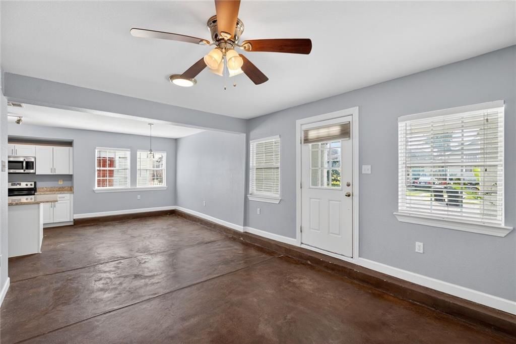 This FIRST FLOOR level, gorgeous 2 bedroom, 2 bath unit is available for immediate occupancy! Featuring scored concrete throughout & a spacious open floor plan to include a stunning kitchen with granite countertops, stainless appliances and nice cabinetry. Primary bedroom has a spacious ensuite full bath with a double sink vanity, and tiled shower. Second bath offers a beautiful vanity & bathtub & amazing storage options. Laundry room includes washer and dryer. Water and lawncare included in rental amount! Dogs accepted on a case by case basis with a $375 non-refundable pet deposit. There is no off-street parking with this unit. Backyard is shared with current tenants. Centrally located in the Broadmoor/Fountainbleau area!