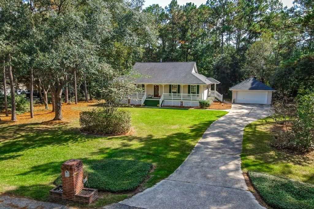 Welcome to this beautiful 4-bedroom, 2-bath raised Acadian-style home nestled on approximately 1 acre of park-like settings in the quiet Magnolia Forest neighborhood of Pearl River, just minutes from Slidell. Enjoy peaceful mornings on the large front porch or relax on the spacious back deck overlooking the landscaped gardens. Inside, the main living areas feature laminate wood flooring. The living room offers vaulted ceilings, a wood-burning fireplace, and multiple windows showcasing the serene backyard. The formal dining room, located just off the front door, features tray ceilings and elegant charm. The kitchen includes granite countertops, two pantries, a peninsula with bar seating, and a breakfast area perfect for casual dining. The split floor plan offers two bedrooms on one side of the home, with a connecting bedroom leading to the primary suite. The primary bedroom features a large ensuite bath with dual vanities, a soaking tub, and a generous walk-in closet. The guest bathroom is spacious, and the laundry room provides ample storage. The exterior includes a two-car detached garage, storage shed, freshly pressure-washed deck, newly painted steps, and recently refreshed gardens with fresh pine straw. The front door has been newly stained with a new knob, and faux wood blinds adorn all windows. Two exterior doors have also been newly painted. Some photos are virtually staged