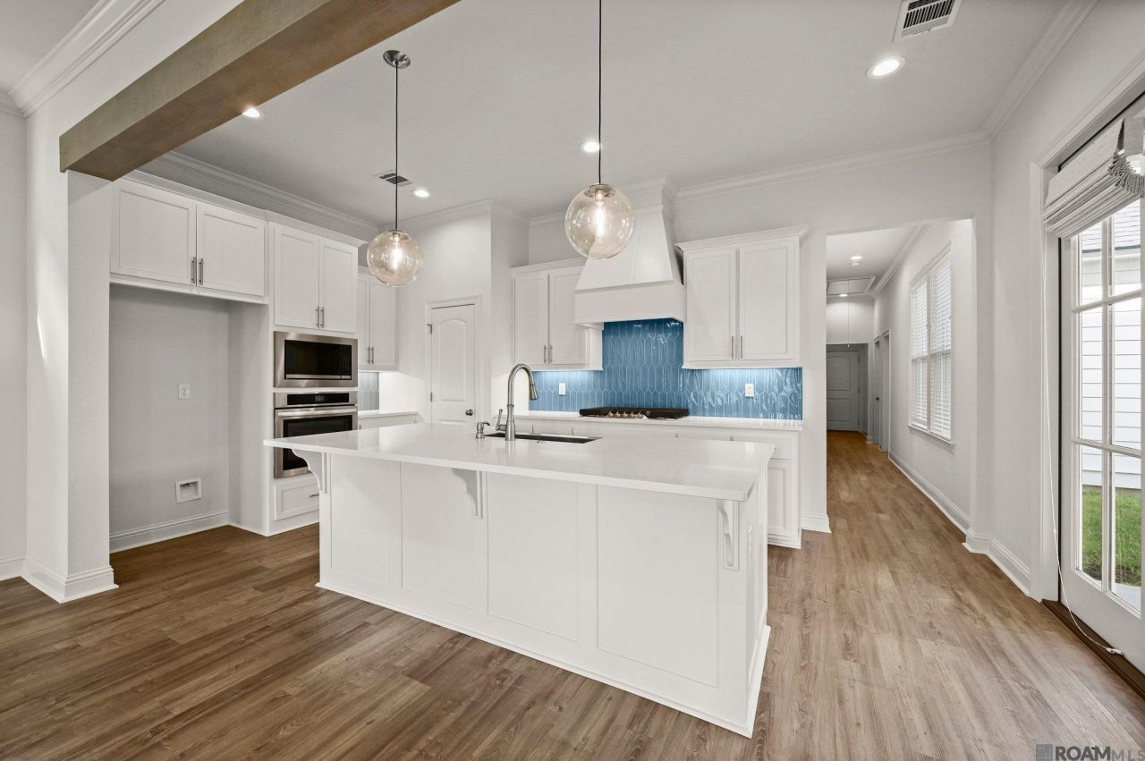 Stunning Newport floorplan by Level Homes, ready now in The Settlement at Live Oak!! The Newport is a two story home with four beds and three full baths and over 2200 sq feet of living space. Enter this spacious home from the large and inviting front porch into the open living, kitchen and dining. The gourmet kitchen is separated from the living room by a stained cypress beam and features custom painted cabinets with under cabinet lighting and 5 hardware pulls, 3cm Organic White quartz countertops and a custom backsplash, large center island with sink and overhanging pendant lights, stainless appliances including a gas cooktop with a single wall oven and built in microwave and a large walk in pantry. There are double doors off of the kitchen that take you out to the large covered side patio which will be plumbed for a gas grill! The master suite is located privately off of the rear of the home with a spa like bath featuring dual vanities with Organic White quartz countertops, custom framed mirrors, separate soaking tub and custom built tiled shower with a seamless shower door. There is an additional bedroom, full bath and a mudroom with space for an optional built in mud bench located off of the garage entry. The beautiful staircase with stained wood treads, painted risers and iron balusters is located in the formal dining and will lead you upstairs where you will find two bedrooms, a full bath and loft! The yard is professionally landscaped, full sodded and the rear yard is fenced. The Settlement at Live Oak offers beautiful homesites in the heart of Thibodaux along Bayou Lafourche and features an abundance of green spaces, a large recreational lake, luxurious community pool and pavilion, scenic ponds, local shopping, neighborhood dining and more! Other lots/plans available.