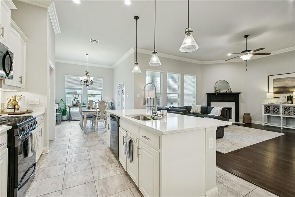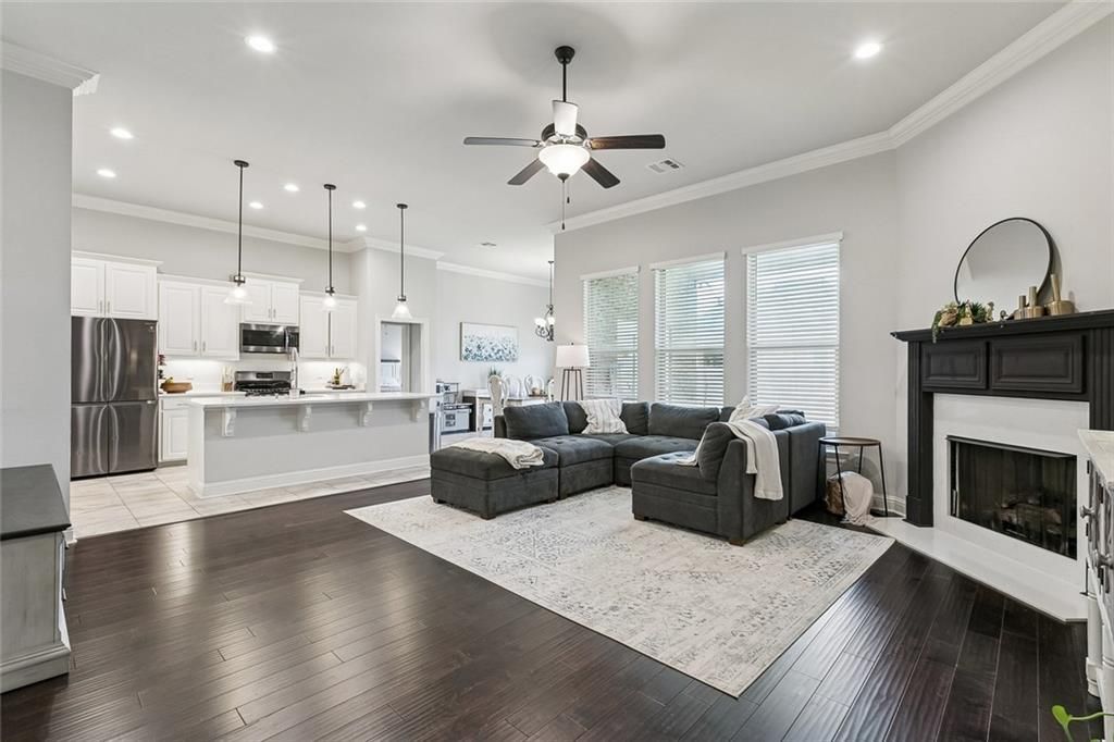 Look no further! This spacious 4 true bedroom, 3 full bathroom home features a flowing open and split floor plan for easy living! The chef's kitchen has gleaming quartz countertops, a huge island and breakfast bar with pendant lighting, chic, black, stainless steel appliances, a gas range/oven, and a spacious walk-in pantry. The kitchen opens to the living room which features beautiful wood floors, crown molding, and a gas fireplace with quartz surround and decorative mantle. The primary bedroom features an en suite bathroom with dual vanities, a soaking tub and separate shower, and an immense walk-in closet connected to the laundry room! All bathrooms have framed mirrors, Tuscan Bronze bathroom plumbing fixtures, undermount sinks throughout, and quartz countertops in all bathrooms and the laundry room. Additional upgrades include: the convenient mudd nook off the garage, LED lighting, cabinet hardware throughout,and ceramic tile flooring in the wet areas. Energy Efficient Features include: Rheem tankless gas water heater, low E tilt-in windows, radiant barrier roof decking, and covered patio. Located around the corner from the neighborhood playground. This home will check all your boxes!