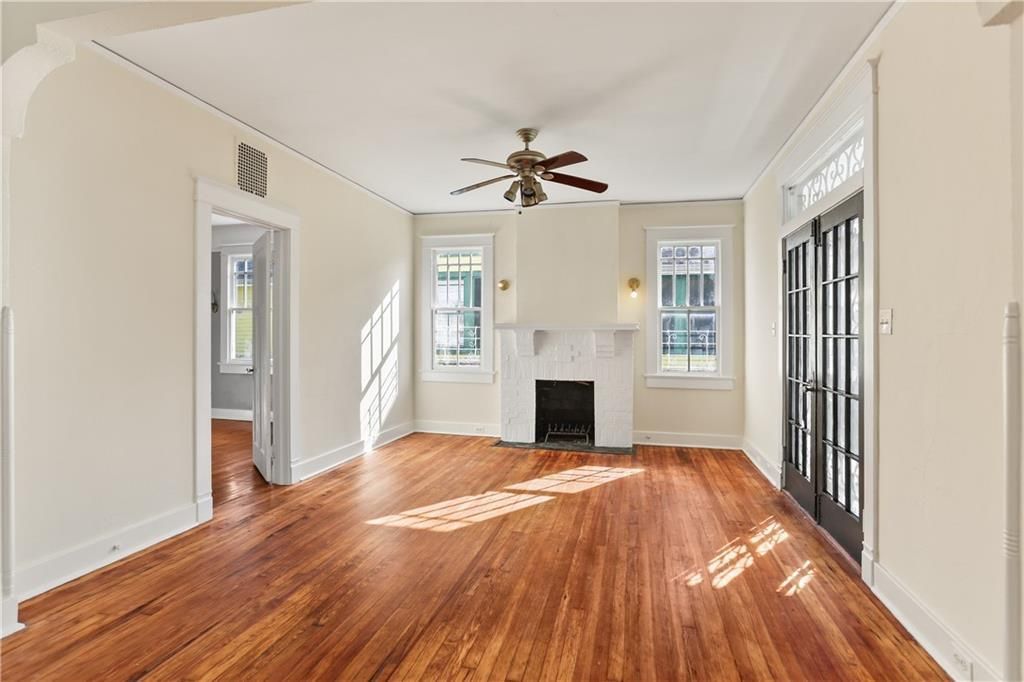 Sweet Gentilly Terrace cottage with lovely views of a neighborhood park directly across the street. This home is on a quiet, tree-lined residential street and features a large lot, off-street parking, lots of natural light, original hardwood floors, granite countertops, gas range, and a large back deck. The living areas and kitchen are spacious, and the high ceilings make the home feel even larger. The home has two bedrooms and two baths, but has a bonus room that could easily be converted to a third bedroom. Located a few blocks from grocery stores, restaurants, and schools on Elysian Fields. The front porch is perfect for morning coffee or evening cocktails, as you watch this lovely neighborhood in action and nature all around you. Roof is 2021. X flood zone! Seller just had floors in living room refinished and some rooms freshly painted. Vacant and easy to show.