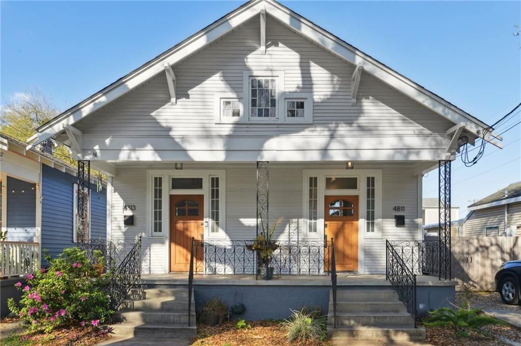 Quintessential Mid-City Arts & Crafts shotgun double ideally situated on oak-lined Bienville Street, just moments from the Canal Street streetcar, City Park, and the dining and neighborhood conveniences along Carrollton Avenue. This classic double offers timeless architectural character paired with strong income-producing potential. Each residence features an open-concept living and dining area, creating a spacious, functional flow while maintaining the integrity of the traditional shotgun layout. Both sides include two bedrooms, one full bath, a rear kitchen, and in-unit laundry. Original Craftsman built-ins, architectural detailing, and a charming covered front porch showcase the home's historic character and curb appeal. Major systems have been updated within the past 10 years, providing added confidence for both owner-occupants and investors. The owner's unit, 4813, underwent a full interior renovation in 2023, thoughtfully blending modern updates with preserved period charm. Unit 4811 is currently leased and producing income, with reliable tenants who would welcome the opportunity to extend their lease. An exceptional opportunity to occupy one side and generate rental income, or to lease both units in one of Mid-City's most desirable and convenient locations.