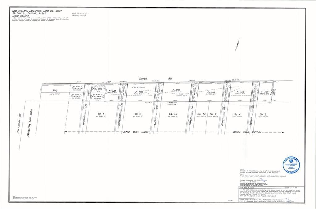 ATTENTION RESIDENTIAL BUILDERS & CONTRACTORS Donna Villa Subdivision Land Available. This site is across from Dwyer Road and in close proximity to the Abramson Sci Academy, Joe Brown Park and LCMC New Orleans East Healthcare Center. The total site can be re-subdivided into 20 lots, the owner/seller is in the process of the resubdivision There are 4 lots to be available on each of the following streets that dead end into the Canal area bordering Dwyer Road. The Streets are Hickerson, Eunice, Citrus, Donna and Rosalia. The average lot sizes will be 65'+/- fronting each street by an average depth of 95'+/-. Surveys have been ordered for the resubdivision and the approval process is estimated to be approximately 90 days. GO TAKE A LOOK the site has been cleared of the overgrowth and will be easier to view.