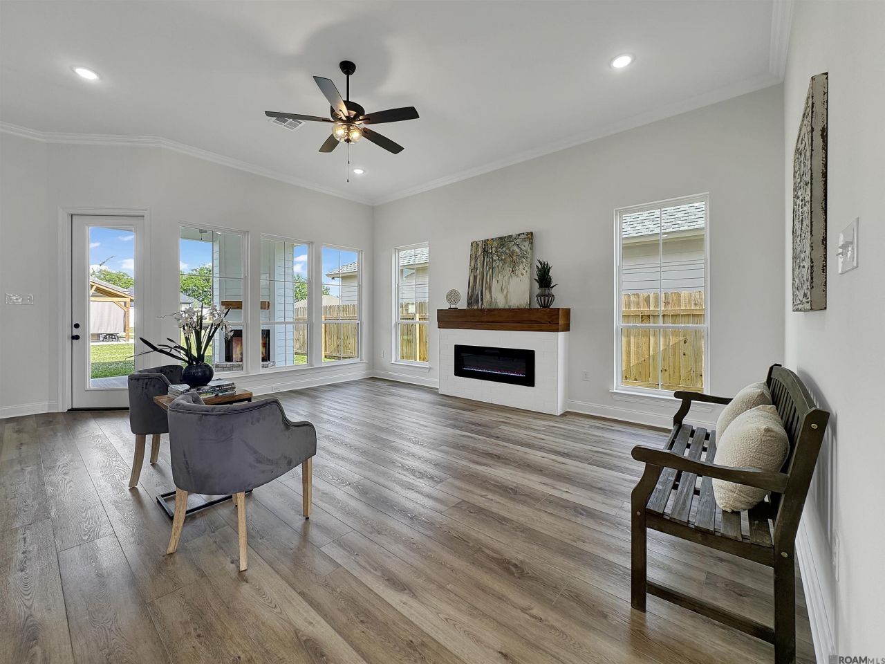 Open 1-5 p.m., Friday-Sunday. Amazing new Kensington 3 BR + Office Plan offers luxury throughout and wonderful outdoor spaces for entertaining and enjoying your home every evening. 2 Fireplaces...1 inside and 1 opposite your outdoor kitchen. Tall ceilings, crown molding, shiplap wall in foyer, office with built-ins, custom cabinets to the ceiling, split plan with gorgeous primary suite. Freestanding luxurious rectangle soaking tub, oversized custom tiled shower, and large closet with chest of drawers connects to Laundry Room with ample cabinets and counterspace. There is a mud-bench area off the garage. The office has custom built in desk with floating shelves. Kitchen has cabinets to the ceiling, island, pantry, 5 burner gas range with air fry feature, microwave built in (not above range), undercabinet lighting, and 3 CM granite. Beautiful luxury vinyl plank flooring throughout, NO CARPET. Energy efficient with radiant barrier roof decking, high efficiency vinyl windows, extra insulation in attic equals low utility bills. Measurements deemed reliable but are not guaranteed by seller, broker or agent. $4000 in Seller Paid Closing Costs when financing is with Blake Maggio with GMFS in Prairieville.