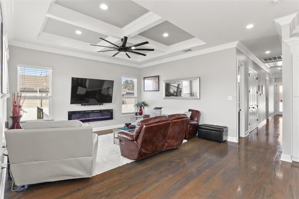 Beautifully designed and move-in ready, this spacious 4-bedroom, 2.5-bath home offers over 2,000 sq ft of modern comfort and style. The open-concept floor plan is great for entertaining, featuring rich wood floors, soaring 10' tray ceilings, modern, plug-in fireplace, and a light-filled living space, that flows seamlessly into the kitchen and dining area. The primary suite provides a private retreat with its 2 walk-in closets and spa-like en-suite bath, while three additional bedrooms offer flexibility for guests and/or a home office. Outside, enjoy the coziness of front & back porches, as well as a garage, plus ample parking space for a boat and/or RV?lots of room for all your toys. This home truly combines function, comfort, and room to spread out...all within an X flood zone, on a nice, newly paved street!!!