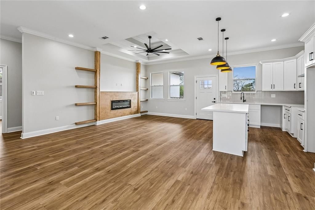 Beautiful new construction modern stucco home featuring 4 bedrooms and 2 bathrooms with thoughtfully designed details throughout. The spacious living area showcases elegant, coffered ceilings, a custom fireplace, and stylish floating shelves that add both character and functionality. The kitchen is designed for both everyday living and entertaining with granite countertops and stainless-steel appliances to be installed. The primary suite offers luxury with a beautifully designed bathroom and a custom closet featuring charming barn doors. Step outside to enjoy the inviting porch overlooking the backyard? for a relaxing evening or entertaining guests. This home blends modern design, comfort, and quality craftsmanship, making it must-see.