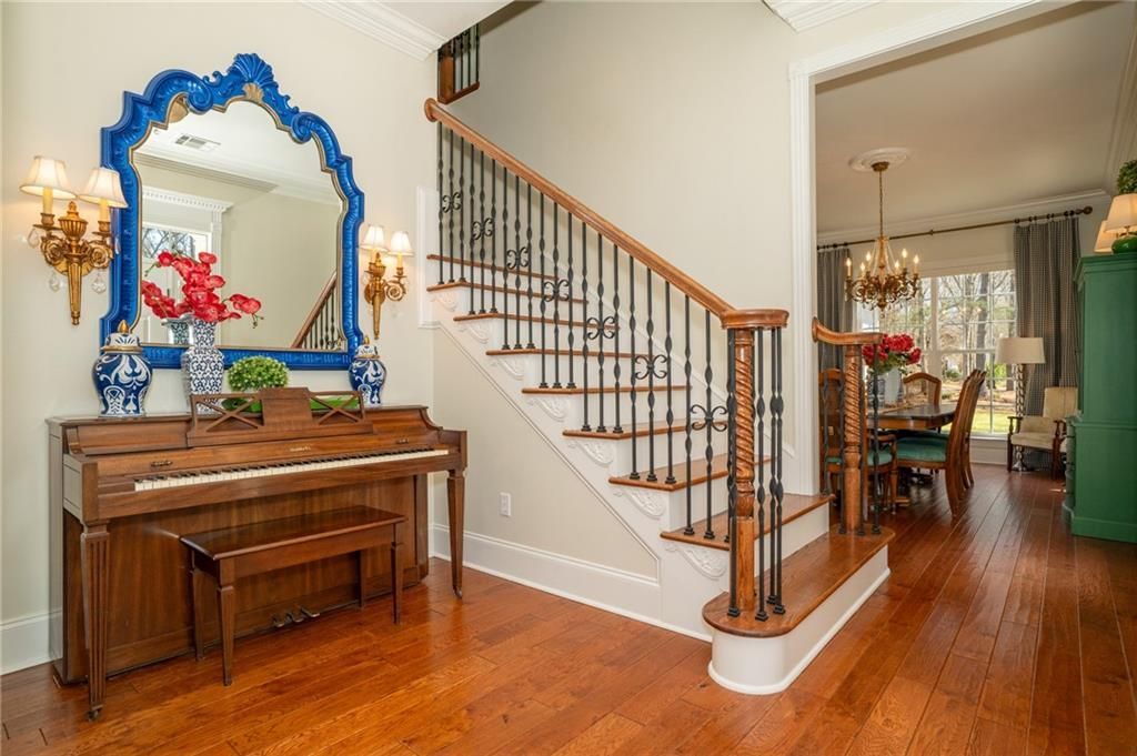 Set high on a gentle hill and surrounded by 19 meticulously groomed acres, this stately custom-built Colonial estate offers privacy, beauty, and room to breathe. A grand front porch and second-floor balcony overlook a manicured lawn and stocked pond framed by cypress and hardwood trees, blueberry bushes, and blooming camellias creating a setting that feels both refined and peaceful. Inside, thoughtful design and craftsmanship are evident throughout. The kitchen features abundant cabinetry, an island bar, granite countertops, and stainless appliances including a KitchenAid range oven, wall oven, and two microwaves and butler's pantry. Natural lighting is abundant . The main level offers hand-scraped oak flooring and slate tile, a formal dining room, formal living room with fireplace, and a recreation room complete with built-in double desks and bookcases. A downstairs primary suite includes private laundry connections for added convenience. Upstairs, the primary suite features surround sound, direct access to the expansive balcony, dual walk-in closets, and an ensuite bath with dual vanities, a jetted soaking tub, and an oversized multi-head porcelain-tiled shower. Spacious secondary bedrooms provide flexibility, with the fifth bedroom showcasing vaulted ceilings and a loft. From the full-length balcony, the view across the pond and grounds is truly breathtaking. Outdoor living is equally impressive. The oversized garage includes doors on both sides, with one opening toward the in-ground gunite pool, ideal for gatherings and seamless indoor-outdoor entertainment. Behind the home, a 1,800 ft2 metal workshop offers an insulated, climate-controlled space with a full bath, a potential garage apartment. The property also includes a covered RV port and a fenced pasture with a 20x30 stable. This property does not require flood insurance and has never flooded. A rare opportunity to own a private estate that blends elegance, recreation, and country living without compromise.