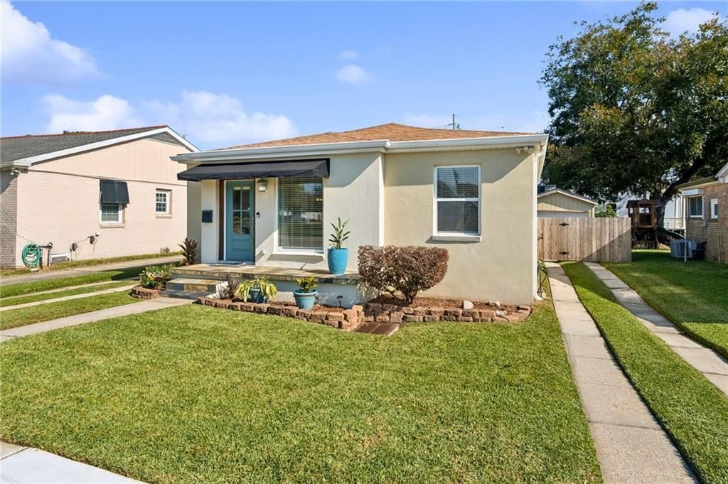 Open Saturday January 17th from 12-2! So many possibilities at this sunny Navarre cottage near City Park! Why rent when you can own! This 2 bedroom, 1 bath home features an open layout with hardwood floors throughout living areas, a spacious U-shaped kitchen with room for an island, and a large bonus den boasting four oversized windows that flood the space with natural light. Enjoy a huge fenced backyard, perfect for pets or entertaining, or perhaps a dream pool, plus a detached shed/workshop for storage or projects. Possibility to convert rear den to primary suite or add on to the rear and still have ample yard! Updates include a new roof (2020), HVAC (2019), stainless steel appliances, energy-efficient windows, and fresh exterior paint (2021). With two driveways providing ample off-street parking, this home checks so many boxes. Property is move-in ready and a great opportunity to live in an established and convenient New Orleans neighborhood! Low assumable flood insurance $925.