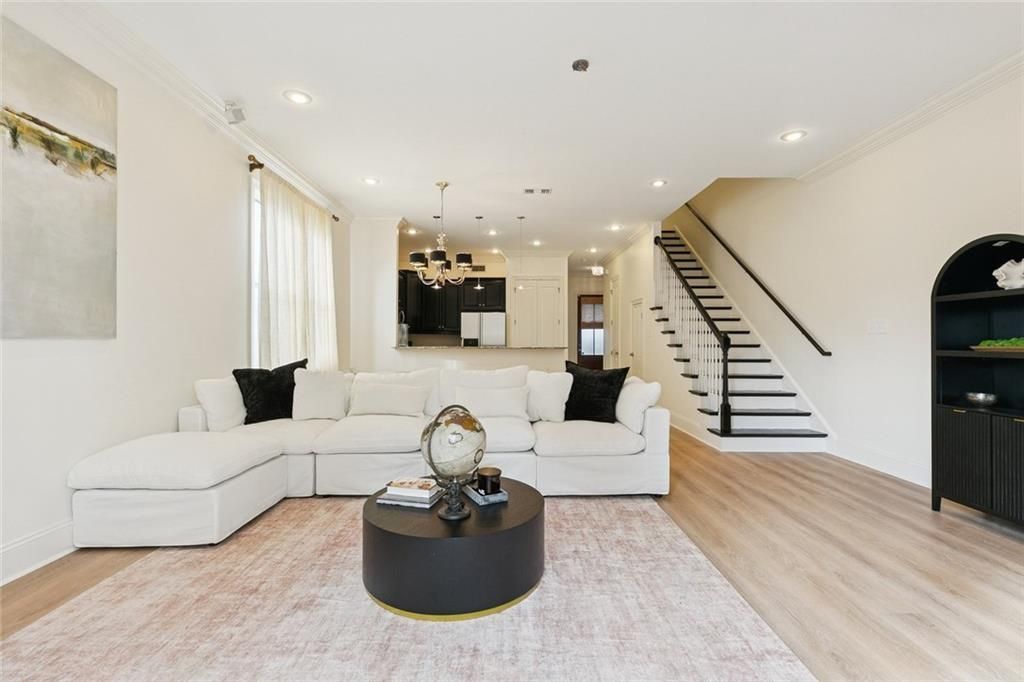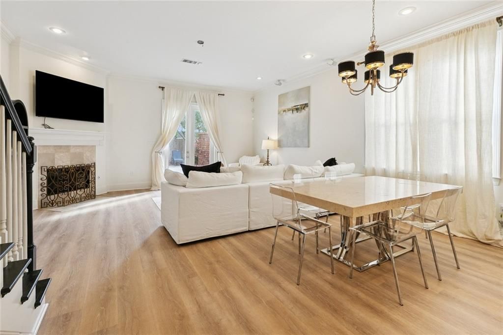 FULLY FURNISHED and impeccably maintained, this elegant townhouse is centrally located with effortless access to Downtown. Thoughtful updates and designer furnishings enhance the expansive great room, which opens seamlessly into a well-appointed kitchen featuring granite countertops, stainless steel appliances, soaring 10-foot ceilings, recessed lighting, and rich wood floors. A stylish half bath completes the main level. Upstairs, new carpet leads to three spacious bedrooms and two full baths, including a refined primary suite with a jetted soaking tub and separate shower. Additional highlights include insulated windows, a garage, alarm system, and a private backyard great for entertaining. Tenant is responsible for electric and gas; owner provides water and internet.