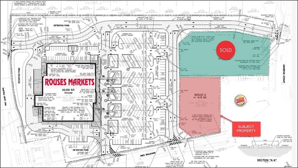 Land site available for sale in Marrero, at the corner of Ames and Lapalco Blvd. This site features over 163' of frontage on Ames Blvd, with direct access to all of the Westbank. The property is adjacent to Rouses Supermarket, Burger King, Popeyes, Citi Place, Family Dollar, and a number of other national retail, restaurant, and service tenants. This is a NNN lease.