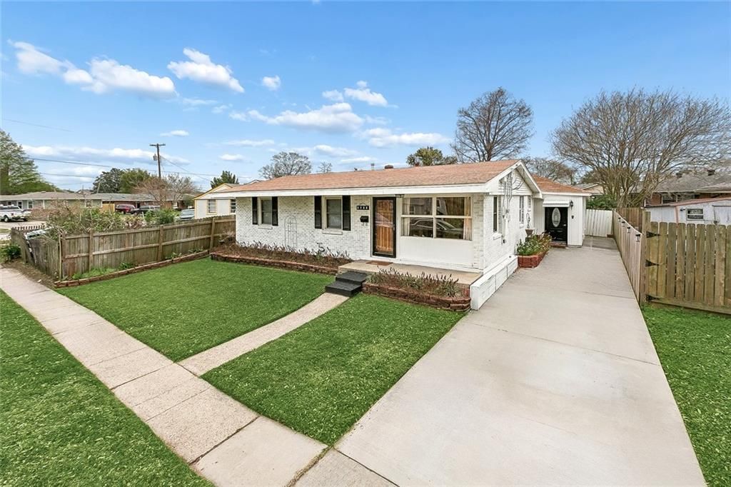 Charming and move-in ready, this 1,530 sq ft 3-bedroom, 1.5-bath brick home at 6208 Cummins St blends classic character with comfortable modern living. The front living and dining area offers great natural light, warm wood-tone flooring, and a seamless flow that makes everyday living and entertaining easy. At the heart of the home is an updated kitchen featuring painted cabinetry, butcher-block style countertops, tile flooring, and stainless appliances, opening toward the living spaces so you can cook while staying connected with guests. A standout feature is the oversized den with soaring vaulted wood ceilings, creating a dramatic yet cozy second living space perfect for movie nights, gatherings, or a playroom. French doors lead to the covered back patio and expansive fully fenced yard, providing an excellent indoor-outdoor connection and plenty of room for pets, play, and gardening. The home also offers three comfortable bedrooms with no carpet, a full hall bath plus an additional half bath, interior laundry, generous driveway parking, and a storage shed. An assumable flood insurance policy is currently in place for just $803 per year, offering valuable savings for the next owner. Located in a convenient Metairie pocket near Veterans Blvd, Airline Hwy, and I-10, you're just minutes from shopping and dining at Clearview Center, Lakeside Shopping Center, grocery stores, fitness options, neighborhood parks, and everyday services, with an easy commute into New Orleans.