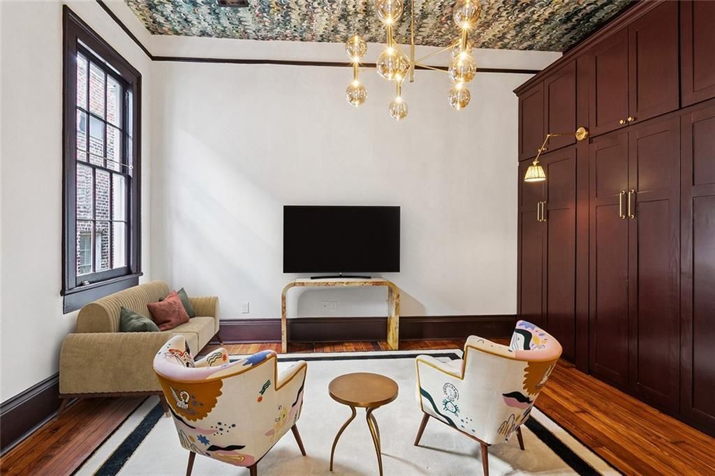 Chic furnished studio apartment featuring 14-foot ceilings, a queen-size Murphy bed with custom cabinetry, and marble countertops in the kitchen and bathroom. The kitchen includes a custom range hood and ample storage throughout. Stylish, move-in ready, and thoughtfully designed for modern urban living. The Begue House, a masterfully renovated historic townhouse located on Esplanade Avenue, overlooking the vibrant Faubourg Marigny. This six-unit apartment complex seamlessly blends classic New Orleans charm with modern luxury. The complete renovation preserves original architectural details, including hardwood floors, intricate moldings, and other historic features, while thoughtfully updating the building for contemporary living. A rare opportunity to experience history, style, and comfort in one of the French Quarter's most desirable locations.