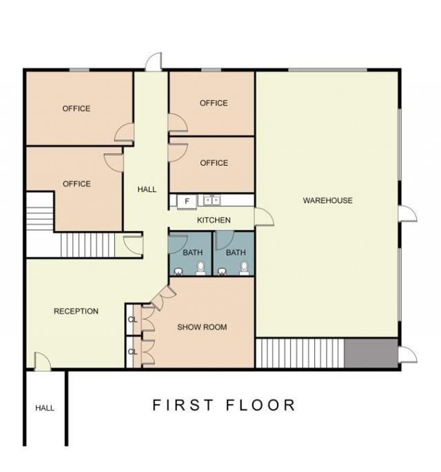 4664 SF Industrial Office/Warehouse for Sale 1018 SF Warehouse space with 3 rollup doors. 3646 SF office space First Floor has 4 offices, reception, kitchen, 2 bathrooms, and a showroom. Second Floor has 4 offices. reception area, kitchen, bathroom, a conference room and a mezzanine in the warehouse. Mezzanine can easily be removed for more warehouse space. Owner financing available