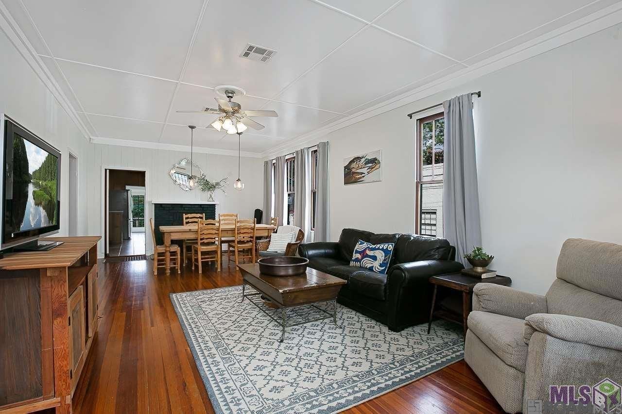 This charming cottage in the heart of Spanish Town is a must see! Walking up to the home, you will immediately notice the large front porch, perfect for enjoying the weather. The living room and dining room areas feature original hardwood floors, neutral paint, an abundance of natural light, updated fixtures, and an original brick fireplace that is a beautiful focal point in the space. The kitchen boasts stunning knotty wood cabinetry, a gas range, original white porcelain sink, an eat at bar, and a great amount of cabinet and counter space. Off of the kitchen is a charming room that can be used as a breakfast room, sitting area, etc.. This home also has 3 great sized bedrooms, two full bathrooms that have been beautifully updated, an indoor laundry room, and a mudroom area. The back yard is fenced and has a large workshop(huge bonus)and off street parking(another huge bonus). The home has updated electrical and plumbing. The home is in Spanish Town, which was established in 1805 and is Baton Rouge's oldest neighborhood. Spanish Town reflects the colorful, changing heritage and development of Louisiana's Capital. This home is full of charming details that you need to see in person. Tenant is responsible for all utilities.