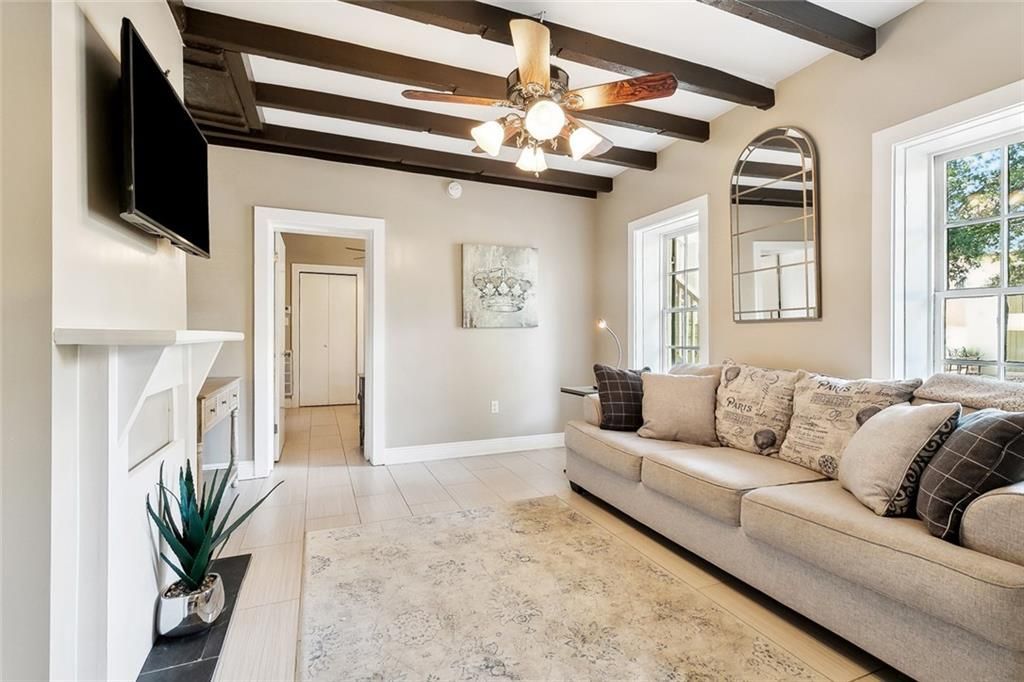 Charming French Quarter Apartment with Gated Off-Street, Assigned Parking! Welcome to your pied--terre in the heart of the French Quarter. This quaint first floor unit offers easy access to spacious living areas with abundant natural light throughout, and views from every room. Beautiful architectural details throughout, easy maintenance tile floors, and ample closet space. The bright and airy layout is complemented by large windows, creating a warm and inviting atmosphere. The full-size kitchen offers ample space for a small dining table. Tenants share access to a lush, oversized courtyard with large trees, for relaxing in the sun or shade. Apartment is offered partially furnished. Shared laundry on site. Water is included; tenant pays all other utilities. Pets may be considered with a non-refundable pet fee.