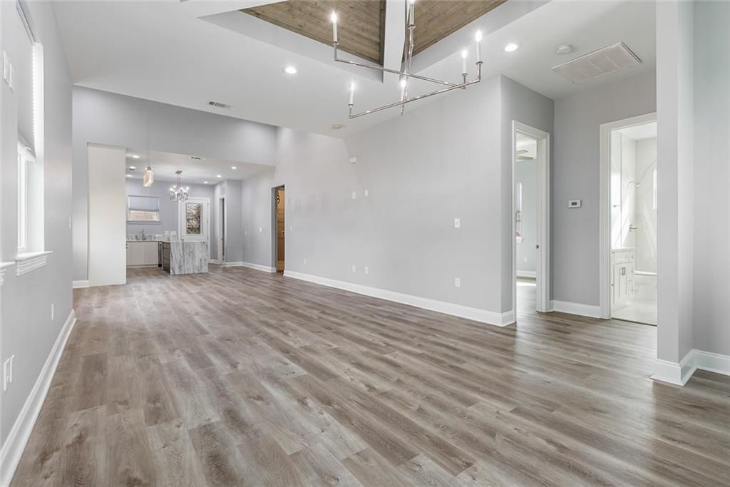 Move-in ready!! Step inside this charming raised cottage with an inviting open floor plan design. Plank luxury vinyl flows throughout and sets the stage for elevated finishes: marble countertops, stainless appliances, and a show-stopping island lit by custom pendant fixtures. The living room is anchored by a dramatic tray ceiling with statement lighting, creating an elegant focal point for entertaining. Spa-inspired baths feature upgraded countertops, separate soaking tub and shower and thoughtful details, while custom shelving and generous closet space deliver both beauty and function, all without carpet.. Modern comforts include a tankless water heater and abundant storage, and the landscaped backyard with a secure storage shed provides a peaceful outdoor retreat. Sophisticated updates + turnkey presentation. Close to Shopping Mall and restaurants. A must-see.