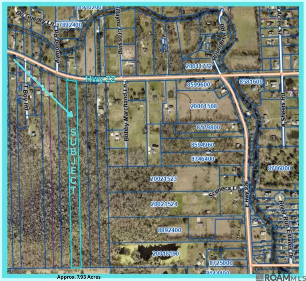 Rural living in Ascension Parish. There are a number of beautiful homesite examples along this side of Hwy 22 just a bit farther out if you would like to take a short ride. Several have shop or RV storage and left a wooded area in back for recreatioonal use or just pleasant surroundings. This large 7.93 tract could work for your residential or other non-commercial use and is offered at an affordable price per acre.